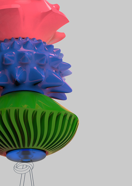 Формы игрушки напоминают растительные элементы. В основе заложена возможность трансформировать объект, создавая разные игрушки, комбинируя или дополняя их.