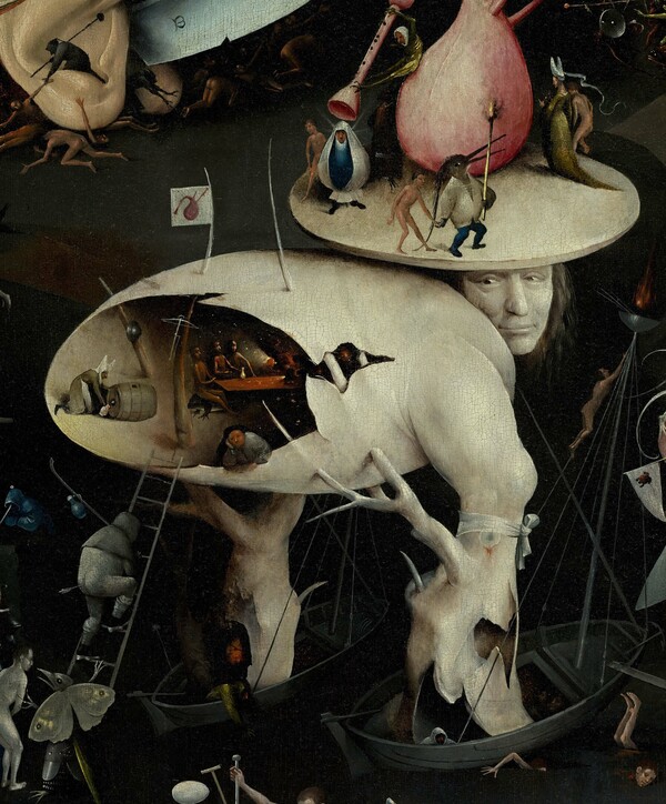 1. Портрет говорящего Джорджа Дайера, Фрэнсис Бэкон, 1966 г. 2. Фрагмент правой створки. Сад земных наслаждений, Иероним Босх, 1500–1505 гг.