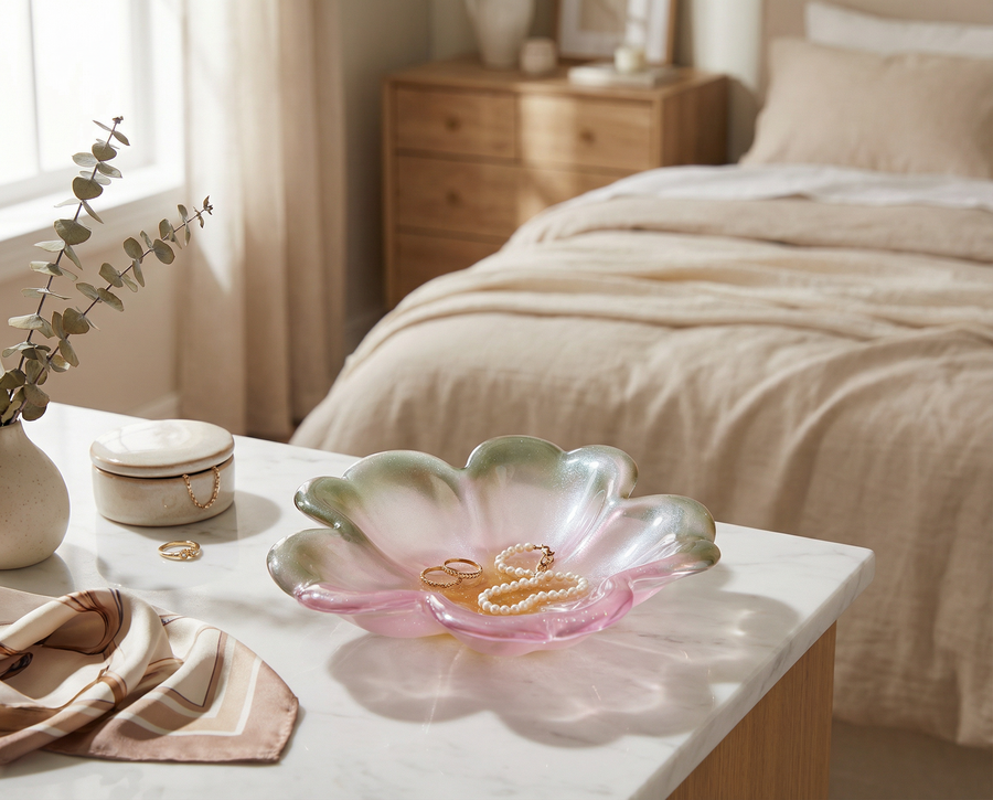 «Eternal Bloom» — коллекция подставок под украшения, вдохновлённая формой распускающихся цветов. Полупрозрачные и мягкие переливы подчеркивают утончённость украшений, превращая подставки в декоративные акценты. Дизайн разработан как концепция для дальнейшего производства с использованием 3D-печати, которая позволит точно передать органические линии и форму изделий.