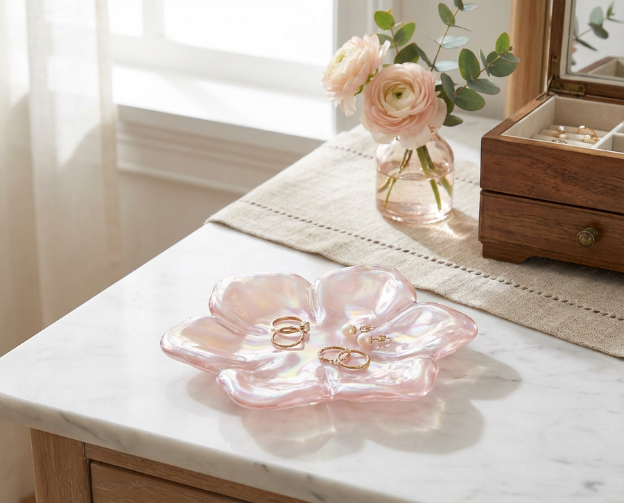 Для дальнейшей подготовки промоизображений и рекламного постера я вновь обращалась к Nano Banana Pro, применяя такие промпты, как: — «professional product photography of this jewelry tray in a home interior» — «professional product photography of these jewelry trays in a home interior» — «advertising poster for jewelry trays collection».