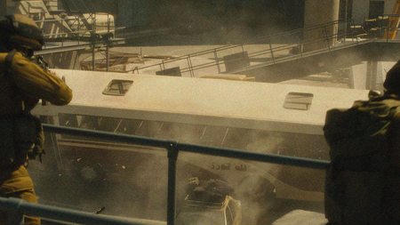 В сцене с самолетом, главный герой бросает гранату, которая взрывает борт транспорта. Трюк был исполнен с помощью нескольких натяжённых тросов, а затем дополнен цифровыми дублерами MPC, пролетающими перед камерой.