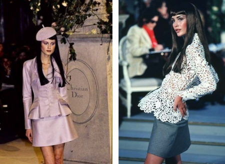 Джанфранко Ферре, который занял пост в 1989 году, усилил элементы архитектурности и роскоши, которые стали отличительной чертой его стиля в Dior. Его коллекции характеризовались строгими, почти скульптурными линиями, крупными декоративными бантиками, барочными кружевами и яркими леопардовыми принтами. Он не стал разрушать классические силуэты, а аккуратно акцентировал статусный образ, делая ставку на материал и богатую отделку. Его стиль гармонично соединял модернизм и классику, давая Dior шлифованную, однако выразительную роскошь.
