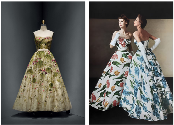 Женственность и романтика: Dior вернул в моду яркие, романтичные и женственные платья, контрастируя с суровыми и строгими образами военных лет.