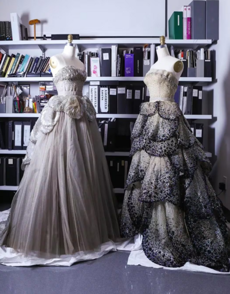 Использование тканей: Для создания объемных юбок использовалось большое количество ткани, что было роскошью в послевоенные годы, когда ткани были дефицитом.