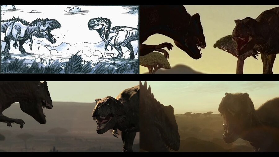 На следующем этапе продумывали движения динозавров. Фил Типпетт использовал маленькие пластилиновые модели для покадровой съёмки и создавал трёхмерные раскадровки. Это позволило заранее понять, как будут выглядеть сцены и как выстроится их последовательность.
