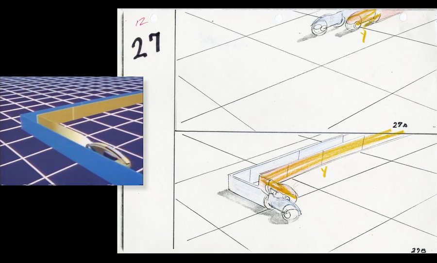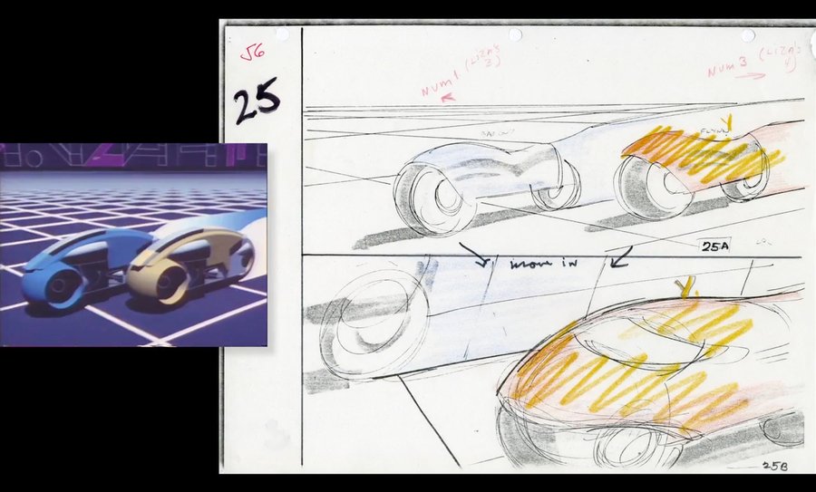 с которым ранее познакомился в Лос-Анджелесе.Помощь требовалась не только для завершения фоновой визуализации, но и для создания динамичной сцены со световыми мотоциклами — ключевым элементом испытаний внутри компьютерной системы. Хотя некоторые источники приписывают Triple-I разработку более изящных корабельных конструкций вроде Солнечного парусника, именно MAGI привнесла в проект принципиально иной технический подход.