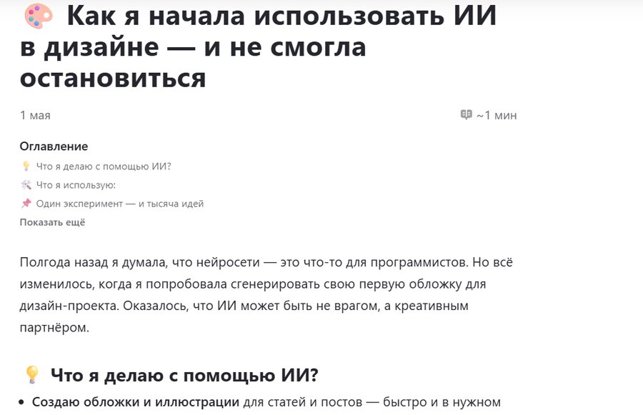 Опыт работы с Дзен был впервые. Для платформы Дзен были созданы 2 отдельные статьи, которые были сгенерированы при помощи Chat GPT. Для эксперимента одна статья имела обложку, которая была сгенерирована в той же нейросети плюсом добавлены ключевые слова. Для второй статьи кроме текстового материала ничего особенного не было добавлено. В итоге охватов больше у первой статьи. К сожалению через некоторое время канал был заблокирован по подозрению наличия робота. Хотя охваты можно было увидеть. От чего напрашивается вывод, что статьи, написанные от руки человека приветствуются больше, но нейросеть все равно является эффективным инструментом по улучшению качества текста.