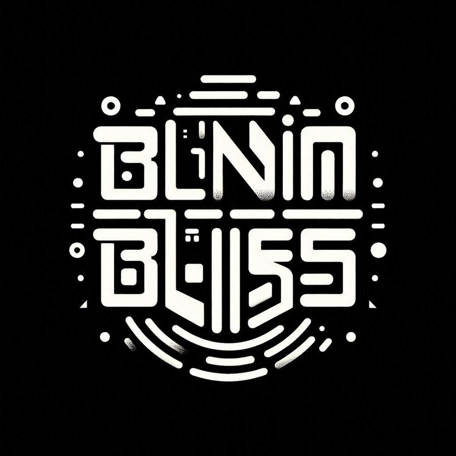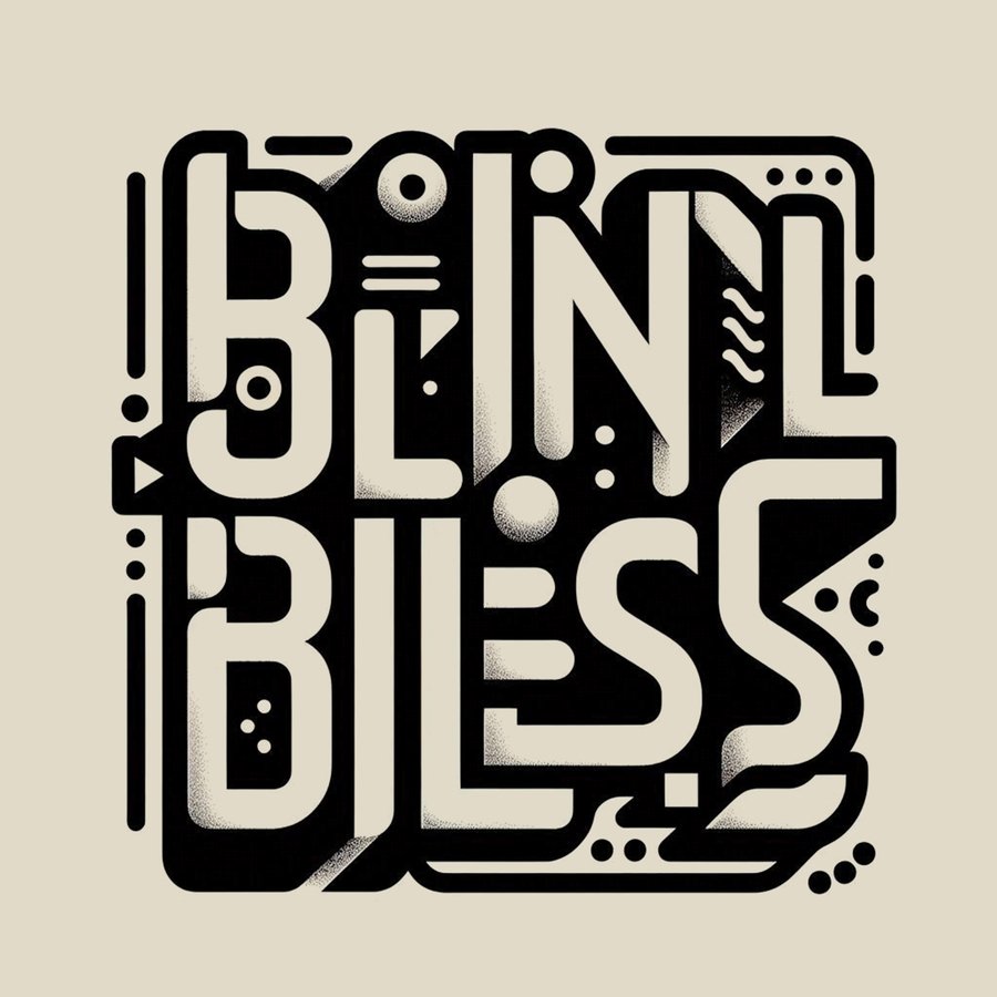 «Этот логотип представляет собой стилизованный текст, в котором слово „Bliss“ выполнено в массивном, геометрическом шрифте. Стиль логотипа напоминает брутализм с элементами минимализма и ретро-футуризма.»