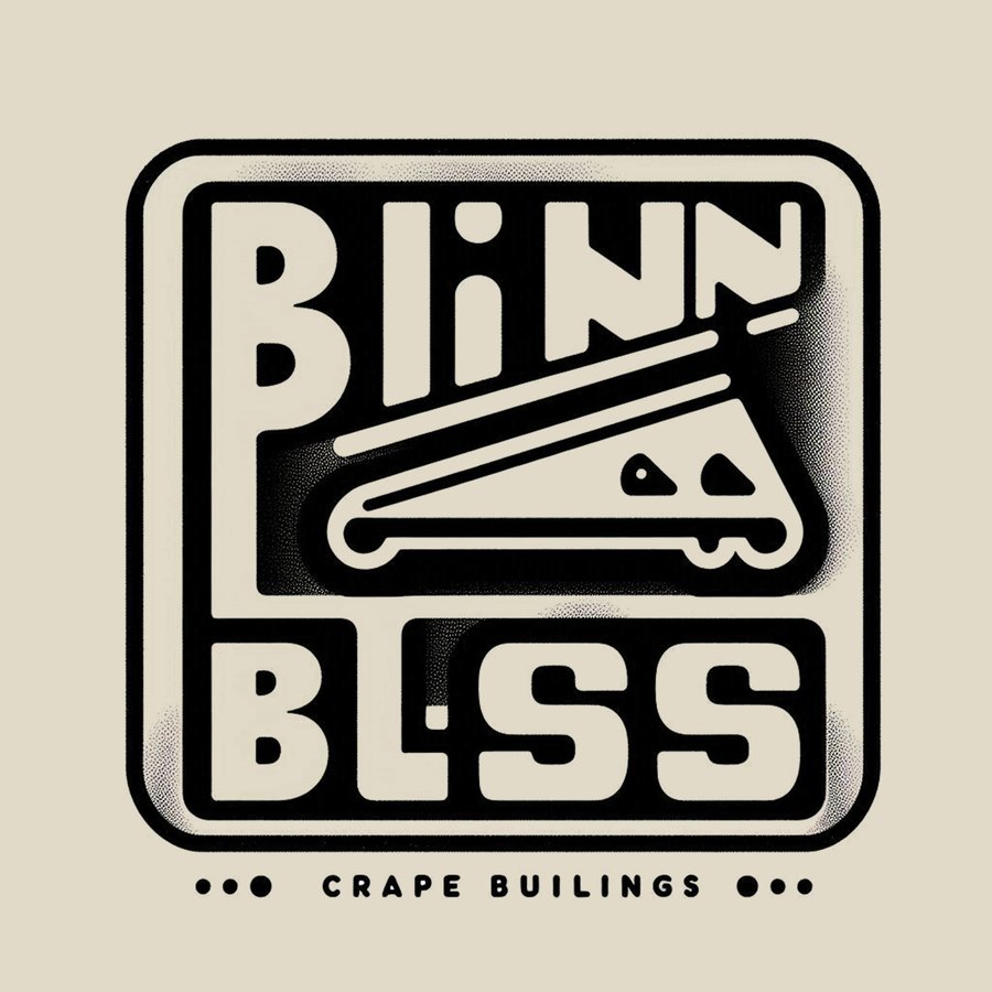 1. Design a striking, minimalist poster for 'BlinnBliss' café, featuring creative crepes with unique fillings. Use a bold, brutalist style with geometric shapes, thick lines, and a black-and-white palette with a single accent color, capturing the café's innovative, retro-futuristic vibe and inviting customers to explore a modern crepe experience.