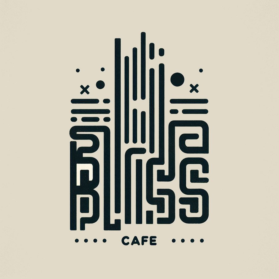 prompt: Design a minimalist logo for the café 'BlinnBliss'. Use brutalist, retro-futuristic elements with thick lines and geometric shapes, keeping the name legible and the style clean and striking.