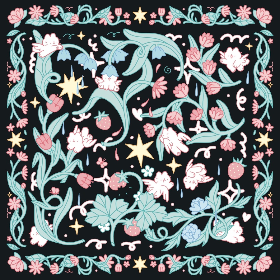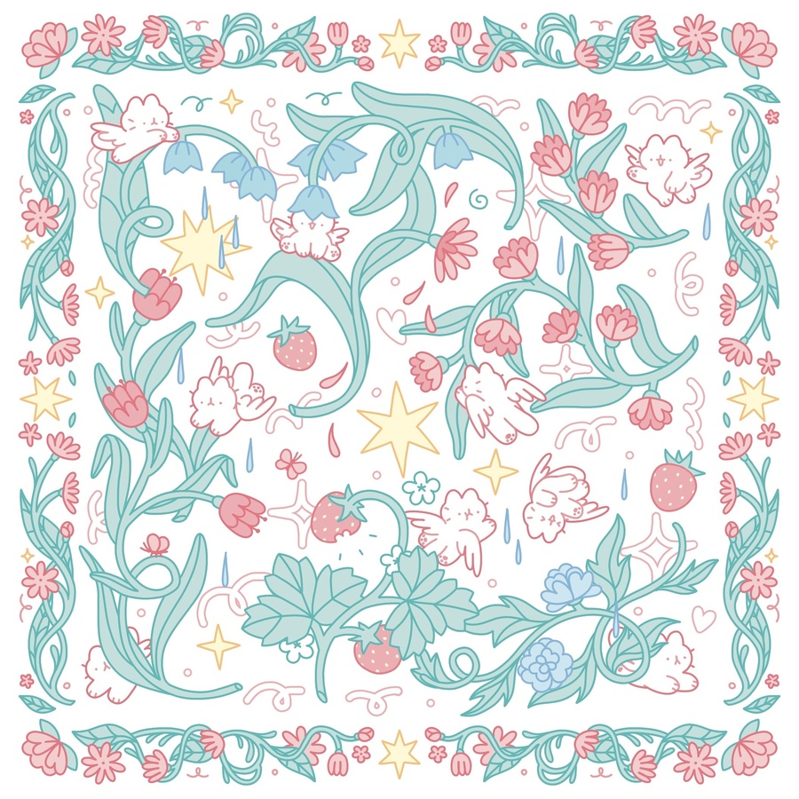 иллюстрация собиралась как пазл, каждый фрагмет уникален и имеет собственное место. кант по краям вдохновлён народными узорами, где также часто использовались растительные мотивы. я старалась наполнить картинку небольшими сюжетами и сделать моих похожих друг на друга персонажей немножко разными!
