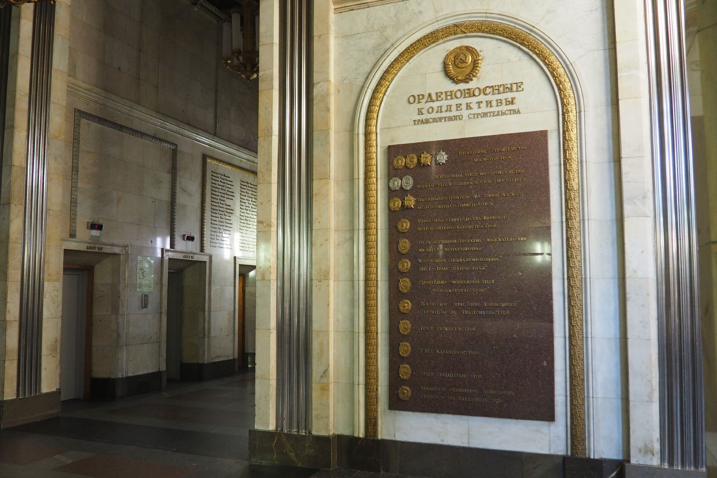 В левой части фрагмента на стене можно также предположительно заметить советские ордена, которыми были награждены трудовые коллективы, в тот или иной период работавшие в высотном здании.