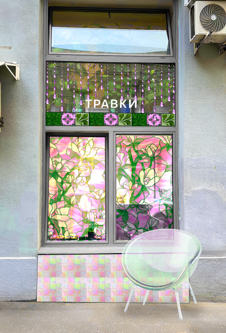 Нашей задачей стала разработка оформления витрины офиса бренда «Травки», находящийся на Китай Городе. Наша идея заключается в том, что растения не могут жить без солнца. Оно и стало нашим главным элементом.