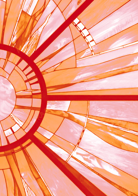 Элементы витража переливаются, создавая интересное изображение, которое можно рассматривать с разных сторон.
