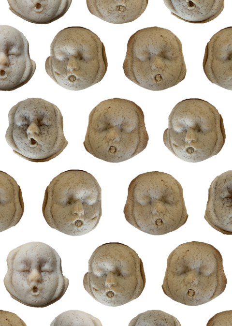 Изначально инсталляция «Братья» представляла собой 10 «колб», в каждой из которых находилось по одному человекоподобному печенью в виде лица младенца.