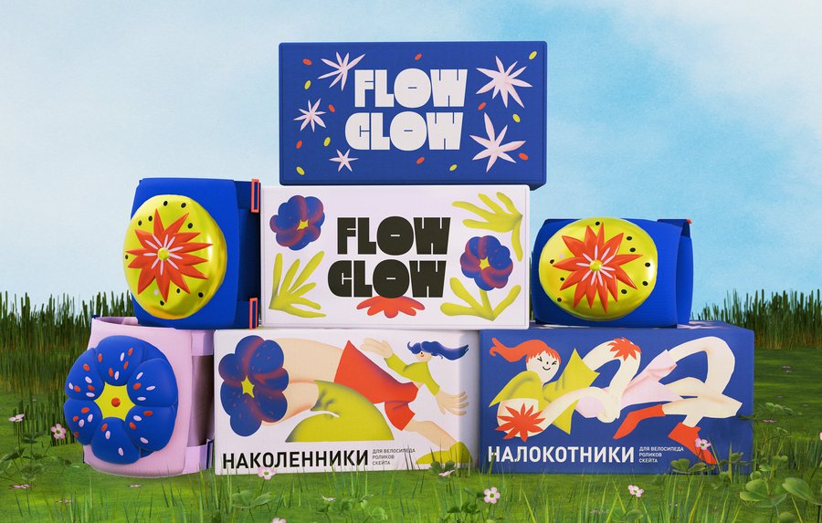 FLOWGLOW — бренд спортивной защиты для девушек, сочетающий яркие цветочные образы и летние виды спорта.