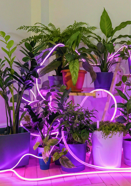 Это не просто светильник, а многофункциональная система, которая одновременно выполняет роль: декоративного элемента: красивая гибкая лента, которая обвивает горшки и создаёт уютную атмосферу и роль фитоподсветки: светодиоды специального спектра (синего и красного) для роста растений, особенно в условиях недостаточного естественного освещения