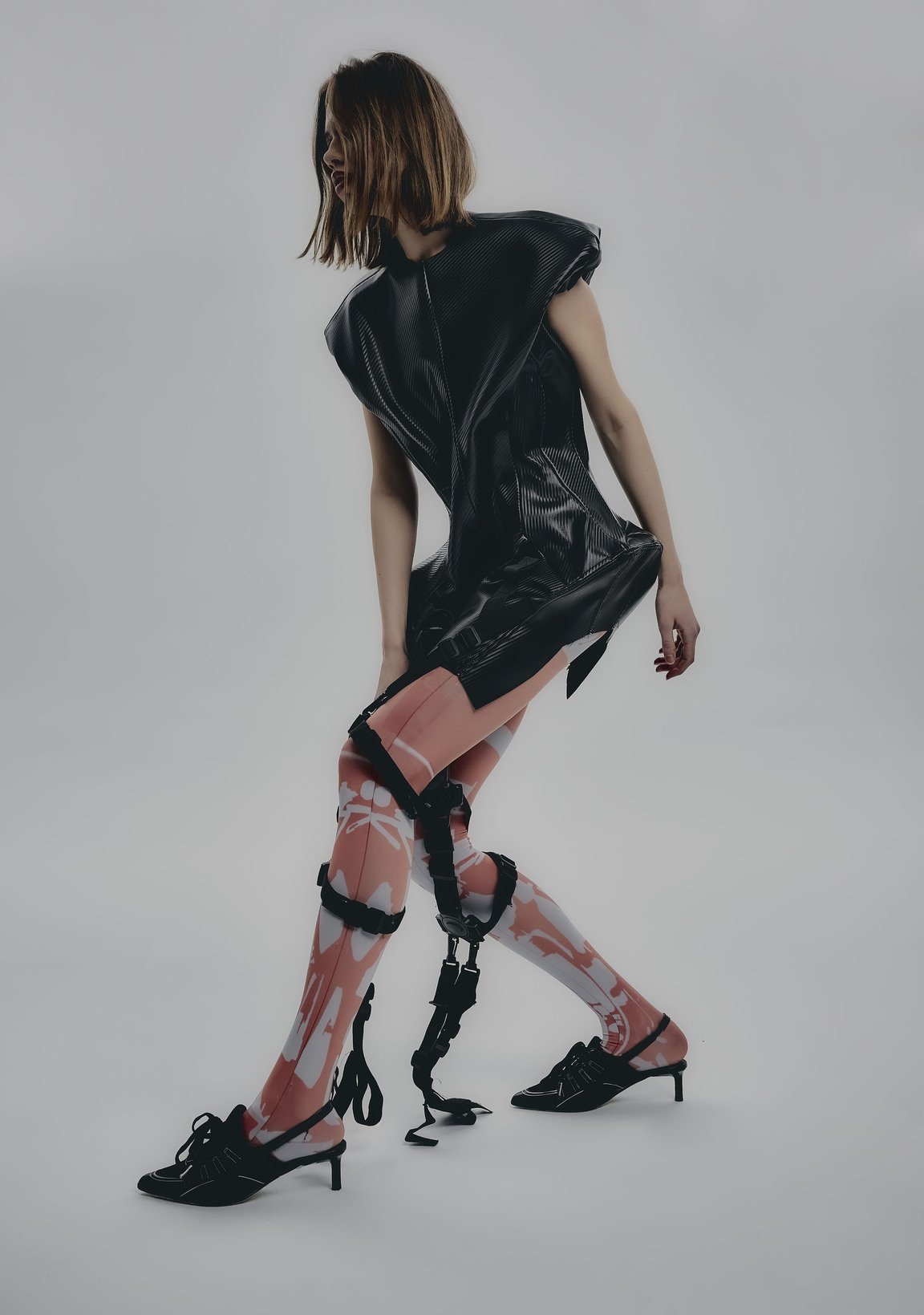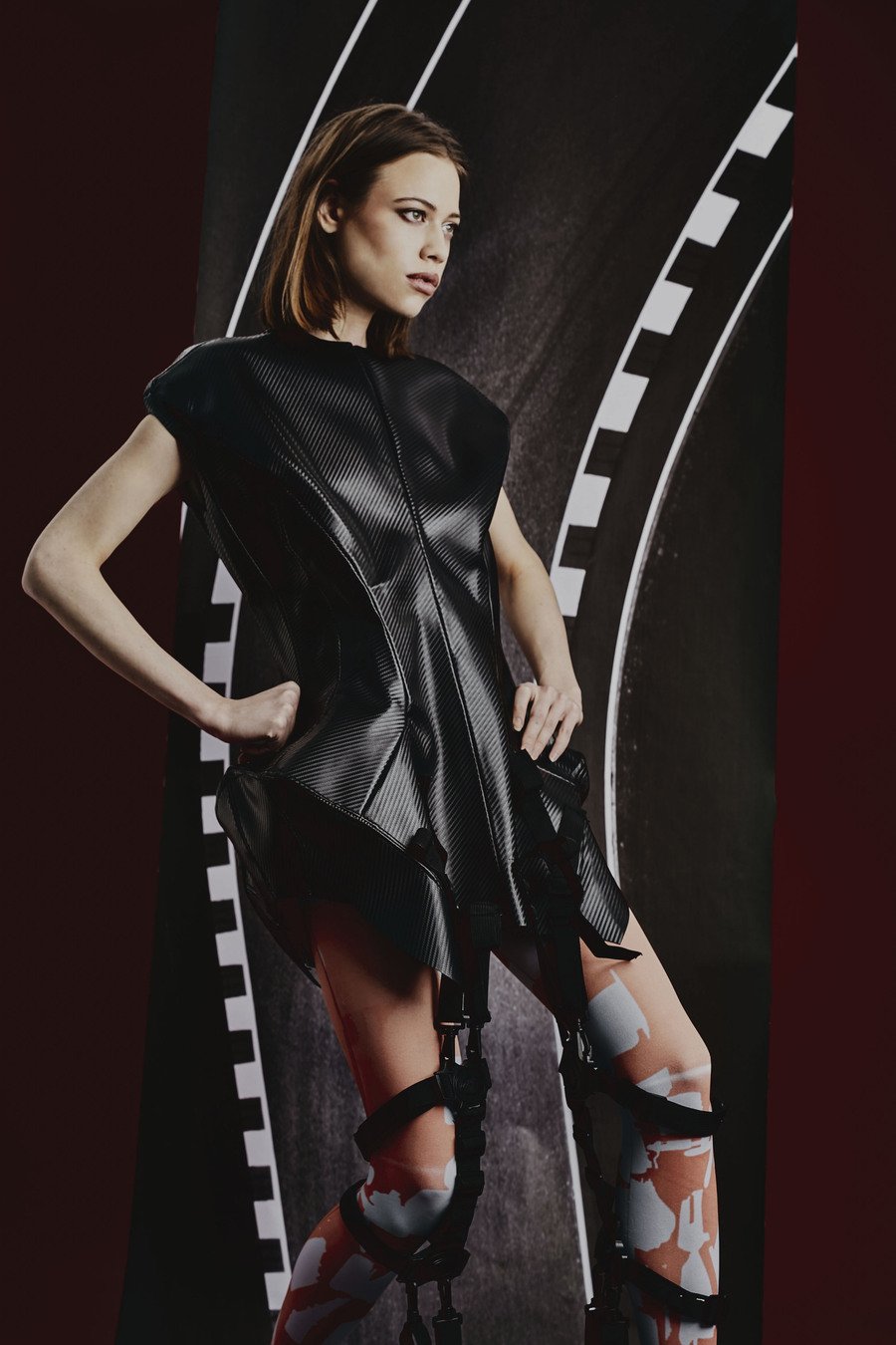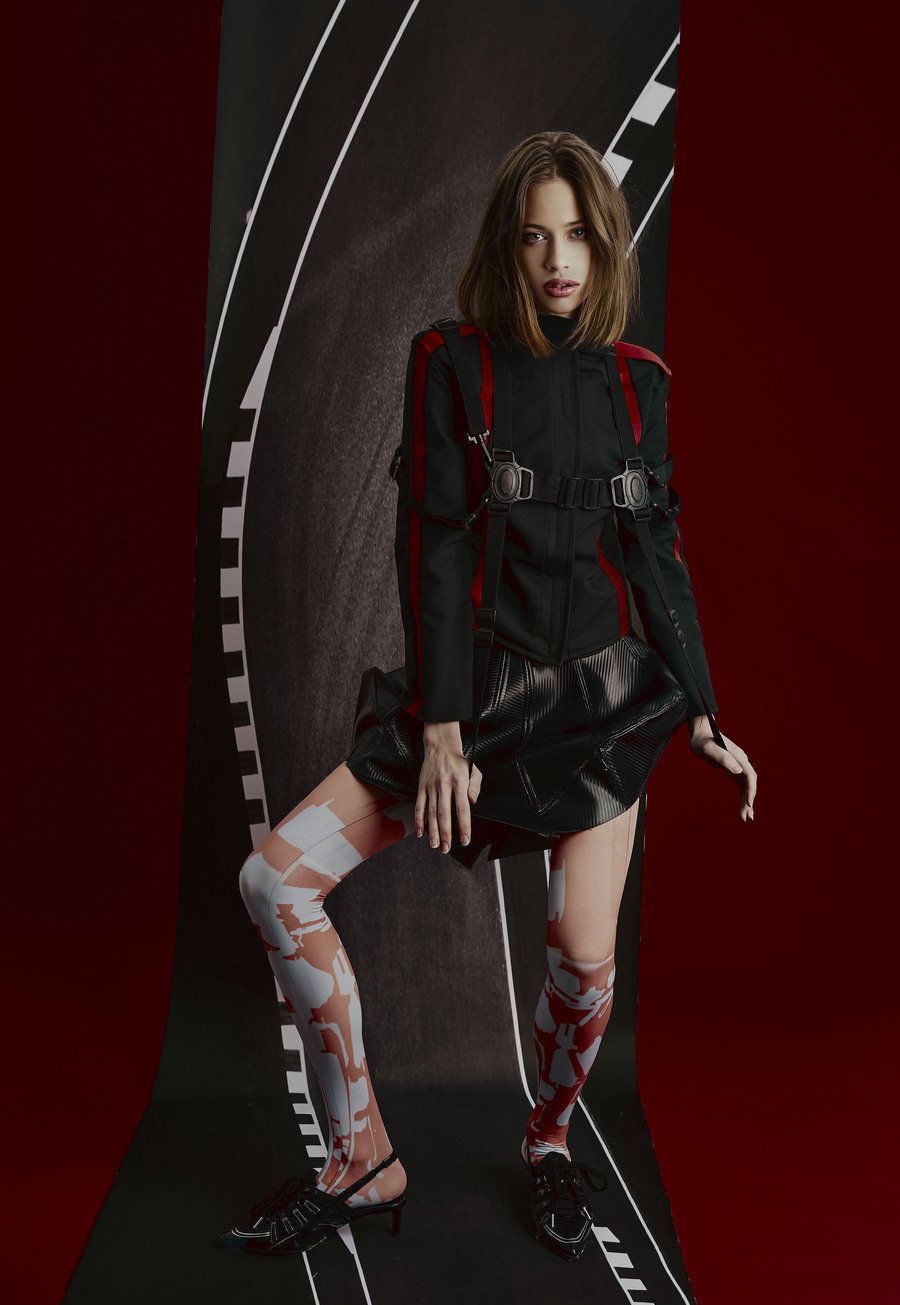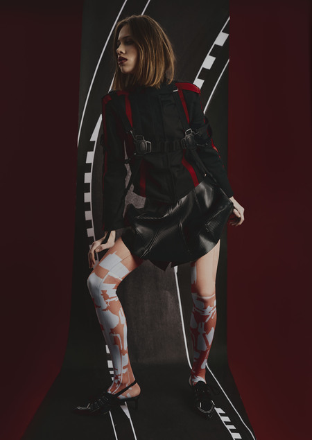 Проект основан на личных воспоминаниях и стремлении к адреналину, который я всегда искала в жизни, меня с детства привлекали экстремальные виды развлечений. Особое влечение у меня вызывали гоночные машины. С пятилетнего возраста я мечтала о «красной машине с лошадкой» — Феррари. По мере взросления я заметила, что мне нравятся мужские элементы одежды, которые, как мне казалось, красиво сидят на женской фигуре. Размышляя о том, почему меня привлекает брутальный силуэт, я поняла, что он дает мне ощущение орони и непобедимости. Широкие строгие плечи, плотные ткани и брутальный силуэт стали для меня символом уверенности, комфорта и элегантности. Я стремлюсь найти баланс между женственностью и брутальностью с помощью мужского гоночного костюма. В своей авторской коллекции я работаю с мужской униформой формулы-1 на женском теле, опираясь на симбиоз гоночного костюма и болида, где болид символизирует скорость и уверенность, а гоночный костюм — поиск силы и женственности.