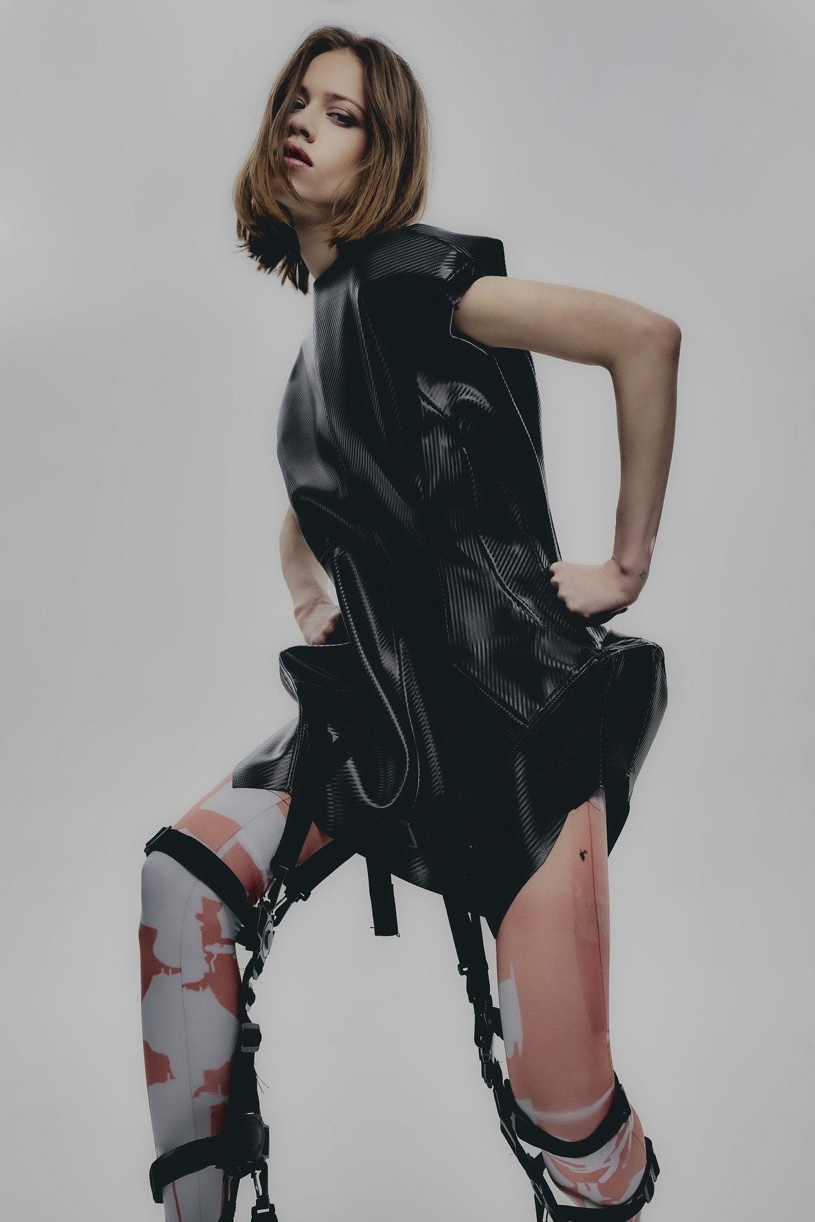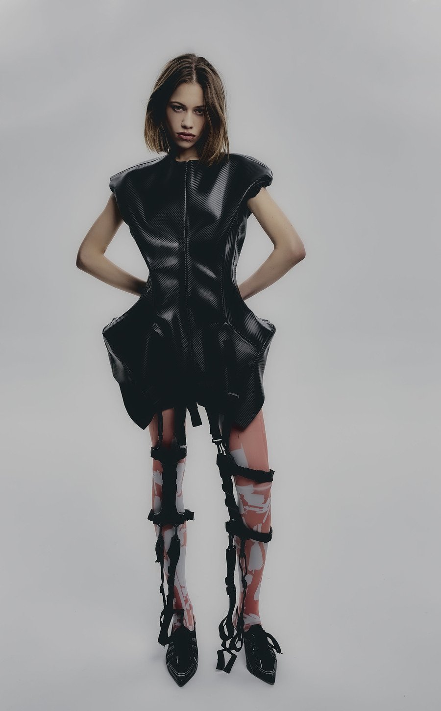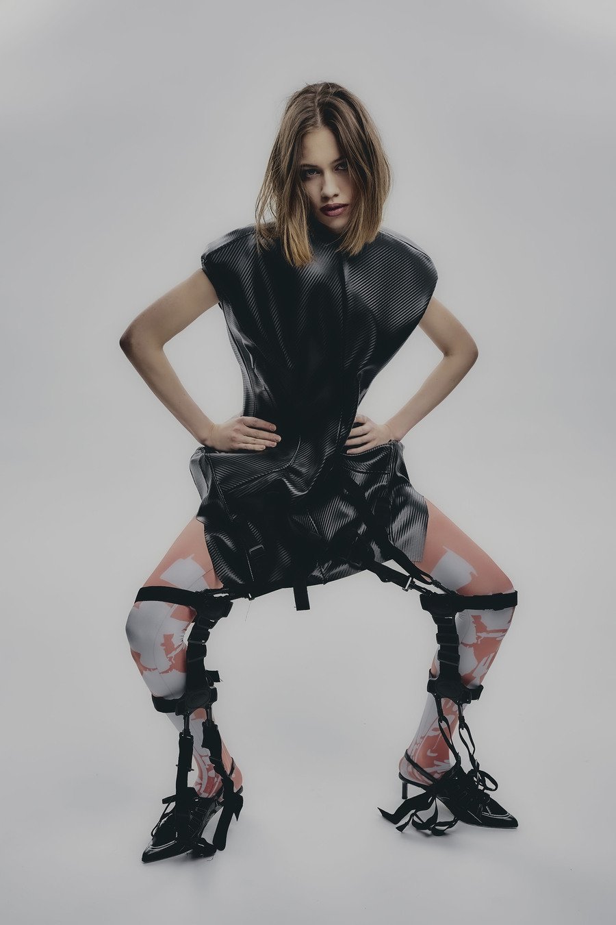 Проект основан на личных воспоминаниях и стремлении к адреналину, который я всегда искала в жизни, меня с детства привлекали экстремальные виды развлечений. Особое влечение у меня вызывали гоночные машины. С пятилетнего возраста я мечтала о «красной машине с лошадкой» — Феррари. По мере взросления я заметила, что мне нравятся мужские элементы одежды, которые, как мне казалось, красиво сидят на женской фигуре. Размышляя о том, почему меня привлекает брутальный силуэт, я поняла, что он дает мне ощущение орони и непобедимости. Широкие строгие плечи, плотные ткани и брутальный силуэт стали для меня символом уверенности, комфорта и элегантности. Я стремлюсь найти баланс между женственностью и брутальностью с помощью мужского гоночного костюма. В своей авторской коллекции я работаю с мужской униформой формулы-1 на женском теле, опираясь на симбиоз гоночного костюма и болида, где болид символизирует скорость и уверенность, а гоночный костюм — поиск силы и женственности.
