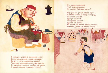 Вера Ермолаева, иллюстрации к стихам Николая Заболоцкого «Хорошие сапоги», 1928