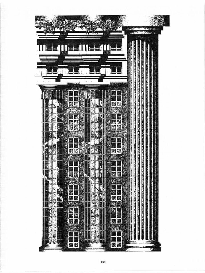 Одинокий «плоская колонна» Вентури, несмотря на коринфский прототип, производит двойственное впечатление. Его намеренно обеднённая форма, лишённая богатства деталей, неустойчивость вместе с изоляцией от других элементов, рождает не возвышенный трепет, и образ вечности, а будто чувство недосказанности.
