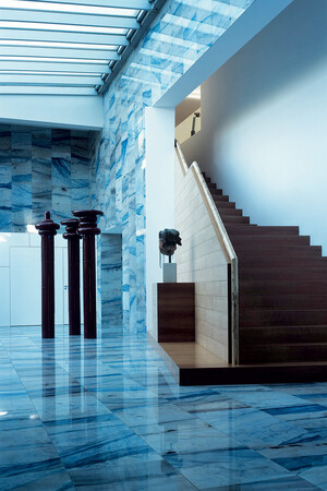 В проекте Кенго Кумы обращается к колоннам с коринфским ордером, типологии, почти не встречающейся в японской архитектурной традиции. Заимствуя этот мотив, он выводит его из привычного культурного контекста. Однако благодаря использованию металла, строгой геометрии и тщательно продуманной подсветке классическая форма будто переосмысляется в духе японского минимализма.