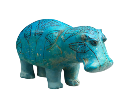 Таким образом, активное использование фаянса для создания ритуальных предметов, подобных этому гиппопотаму, подчеркивает, что визуальный язык Среднего царства, при всей своей декоративности, был подчинен религиозным задачам