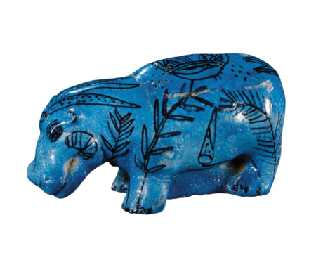 Фаянсовый бегемот из Меира — одно из самых ярких произведений того времени. Отмечается, что тело животного «окрашено лотосами, символизирующими обновление и возрождение» [4]. Но за декоративностью скрыта ритуальная практика: «его ноги, вероятно, были намеренно сломаны, чтобы предотвратить вред умершему» [4]