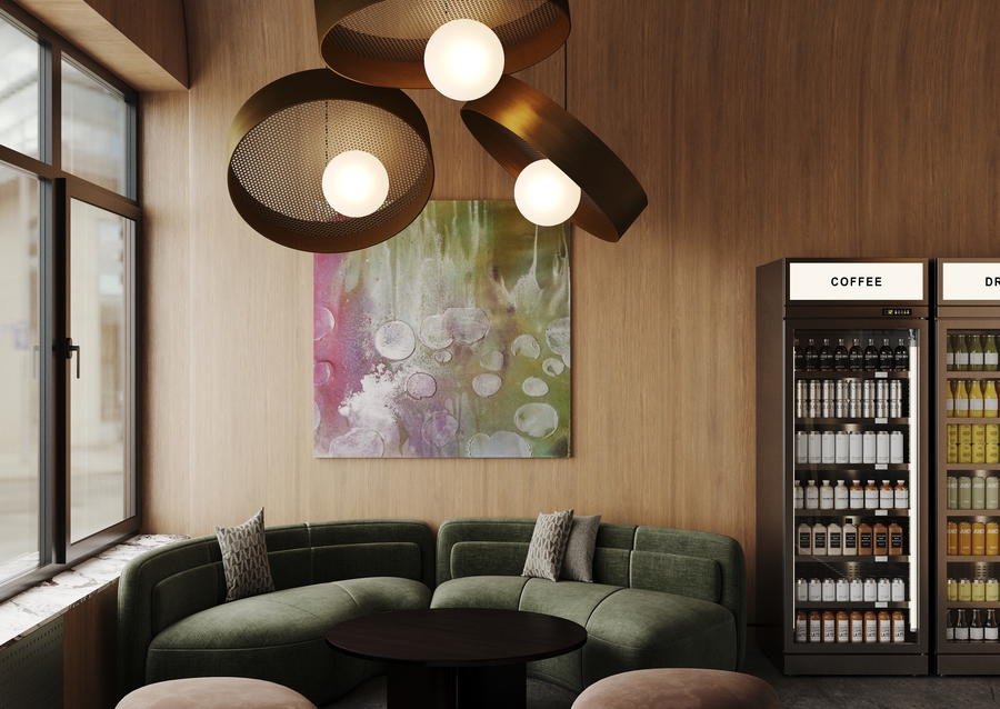 В проекте также предусмотрены четыре фотозоны, каждая из которых имеет собственную интерьерную стилистику: зона с граффити, пространство в эстетике неонового футуризма, эко-фотозона с природными материалами и комната с настраиваемым светом, вдохновлённая работами Джеймса Таррела.