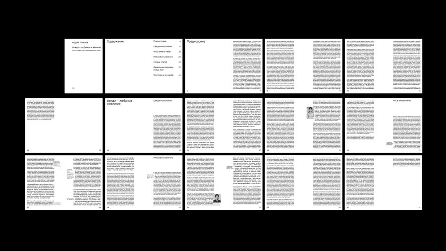 Тезисы выделены большим кеглем, они должны быть громкие, как диктор новостей. Сноски вклиниваются в общий текст, как бы вносят коррективы в личную жизнь граждан.