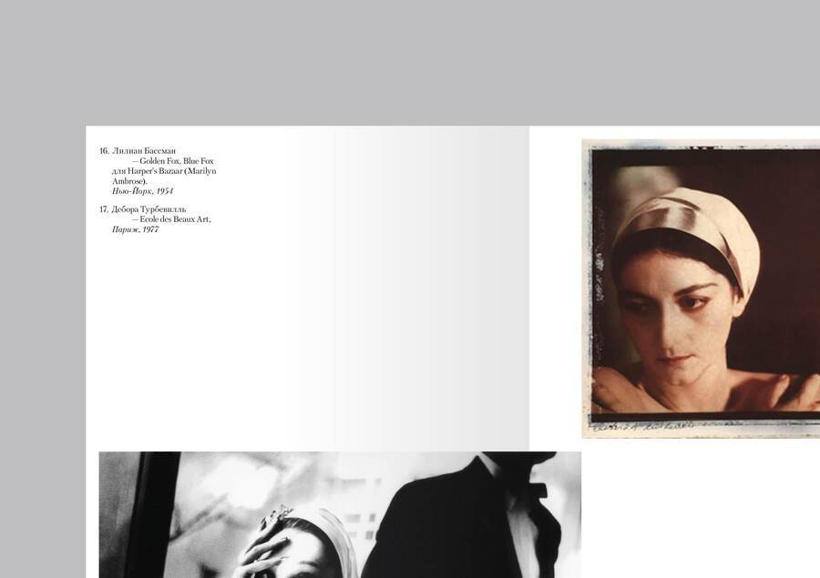 Каталог «Призраки прекрасного. Женский взгляд в модной фотографии» расказывает о творчестве трех женщин-фотографов XX–XXI вв.: Лилиан Бассман (1917-2012), Деборы Турбевилль (1932-2013), Сары Мун (1941) через призму женского взгляда и особенностей, сходства и различий стиля каждой героини.