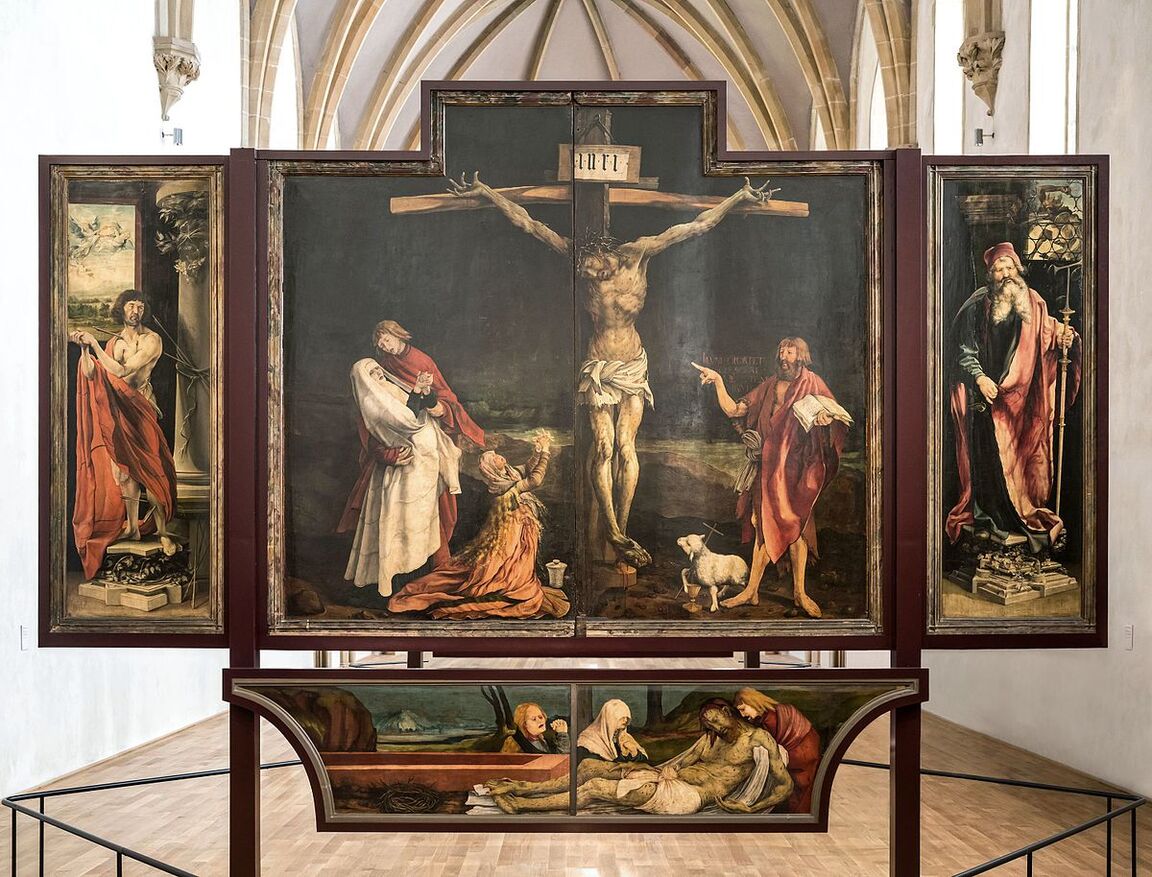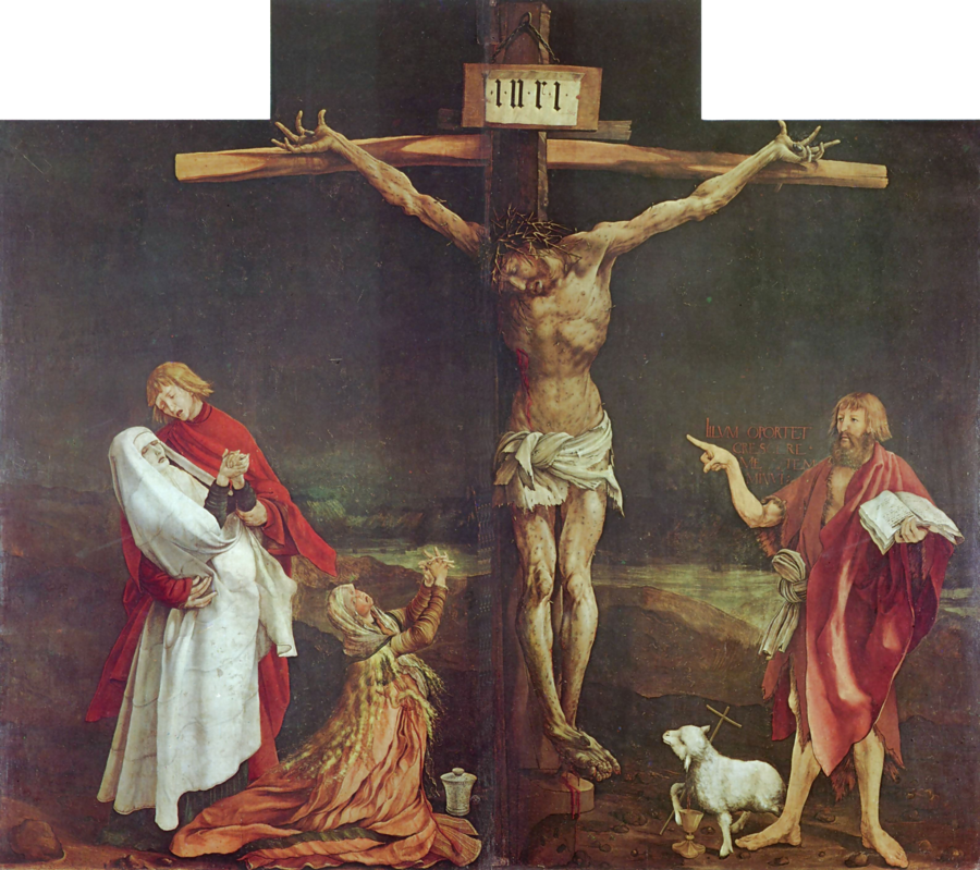Фрагмент росписи алтаря Изенгеймского монастыря с Распятием (1512–1516), Маттиас Грюневальд. Эльзас, Франция // Изенгеймский алтарь в раскрытом виде