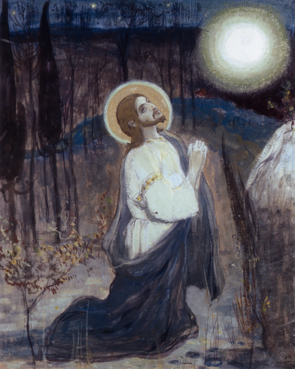 «Моление о чаше», конец 19 в., В. А. Котарбинский. Национальный музей «Киевская картинная галерея», Киев // Эскиз «Моление о чаше» (1898–1900), М. В. Нестеров. Государственный Русский музей