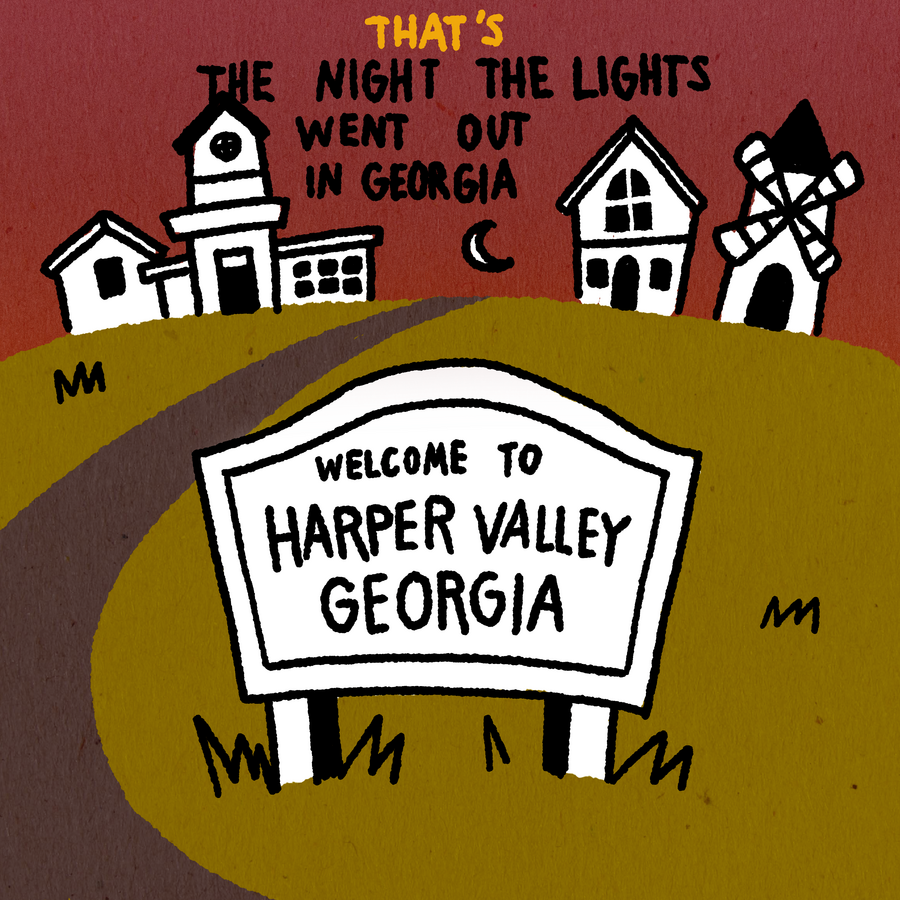 «The Night the Lights Went Out in Georgia». Песня рассказывает историю о семейной драме и убийстве с неожиданной развязкой.