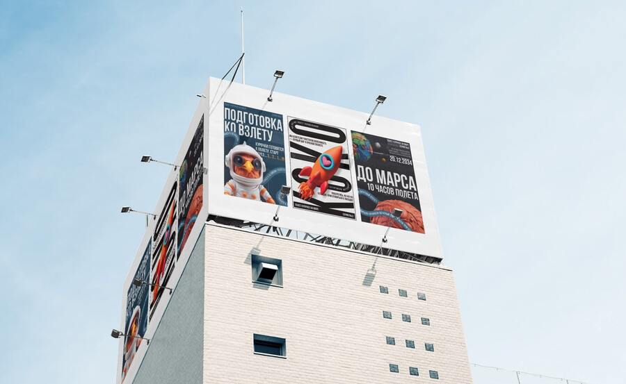 Визуализация плакатов о ключевых этапах миссии и продукции компании, 2023 г