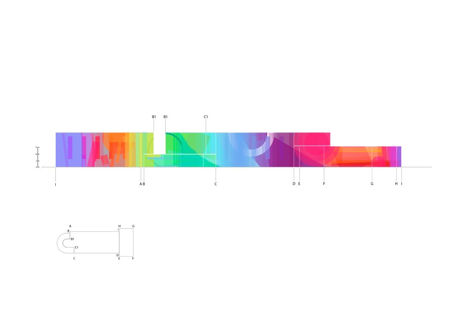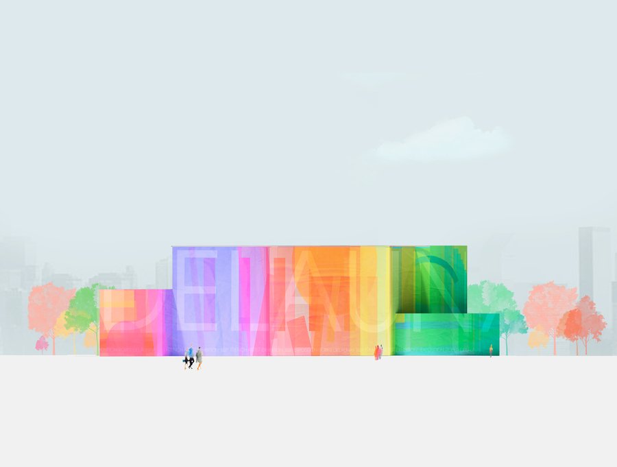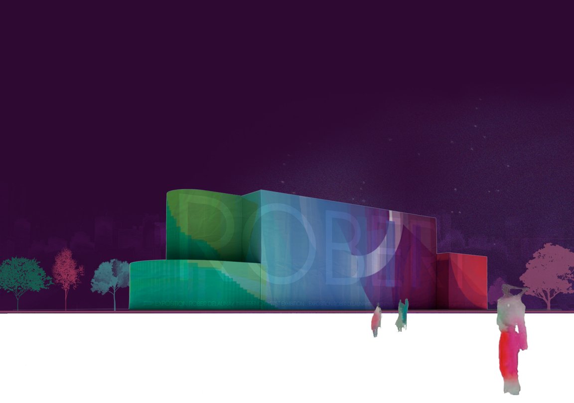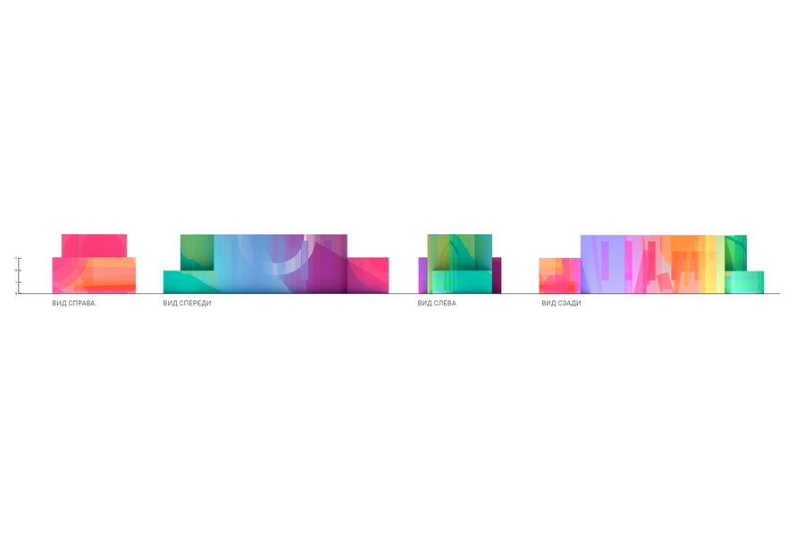 Концепция графического фасада заключается в отображении идей преломления архитектурных образов и «симультанном звучании» форм.