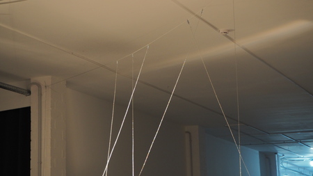 Координата x — это интерактивная инсталляция космогонического вопроса сливающегося в гул лакуны. Рассинхрон истин запутывает клубок знаний человечества, образуя им же созданный конструкт.