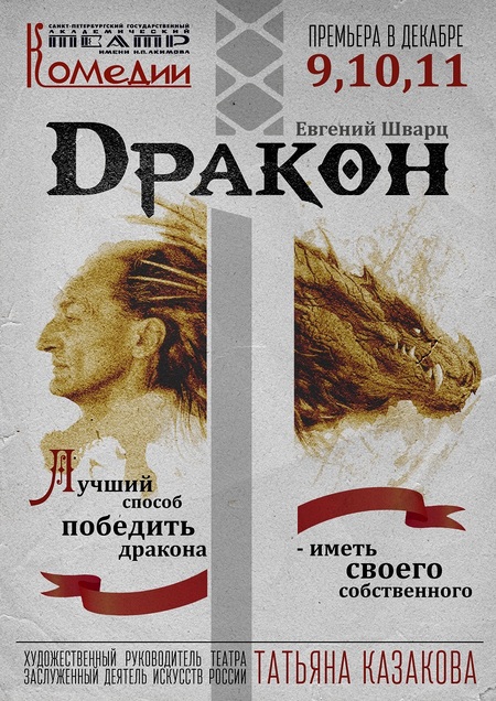 Афиша спектакля по пьесе Евгения Шварца «Дракон», Дамаск, 1970-е годы // Афиша спектакля по пьесе Евгения Шварца «Дракон», Санкт-Петербургский государственный академический театр Комедии, 2016 год
