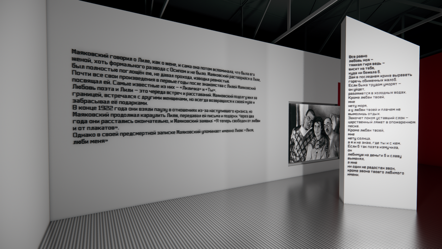 Выставка «Маяковский — Родченко» — не просто выставка работ или творчества художников. Это рассказ об их истории, совместной работе, индивидуальных достижениях, периодах пика и падения и их влияния на творчество. Цель выставки — раскрыть художников с разных сторон. Маяковский и Родченко были творцами, показавшими себя в разных видах искусства, что позволяет справиться с этой целью