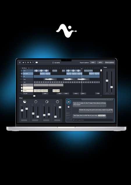 Melodrift — приложение для написании музыки со встроенным AI. С помощью удобного интерфейса и помощника можно создавать собственные композиции, обучаться написанию битов, разбирать песни на ноты и многое другое.