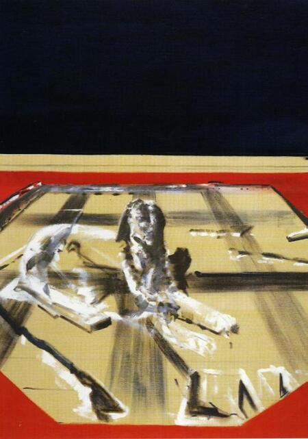 В «Сфинкс II» Фрэнсис Бэкон изображает пустынное пространство со сфинксом. В работе бросается в глаза бездонное пространство, подразумевающееся перспективой и черной пустотой над основной частью картины. Видное нам пространство состоит из пустыни, окруженной огромным красным пятном. Детали пространства, включая сфинкса, изображены полупрозрачно и туманно, будто призраки, а колорит этих деталей ограничен контрастирующими черным и белым, ассоциирующимися со вспышкой. Детали помимо сфинкса почти не различимы, видны издалека, но у них отсутствует строгая форма, они будто раздроблены. Такое изображение, включая тревожную атмосферу, намекает на массовое уничтожение, в таком жестоком контексте, смотря на красное кольцо, вспоминается река Флегетон, протекающая в седьмом кругу ада Данте. При таком сравнении, сфинкс теряет свое отношение к мудрости, но начинает приравниваться кентаврам, предотвращающим побег грешников из реки, он становится могучим стражем мира и спокойствия.