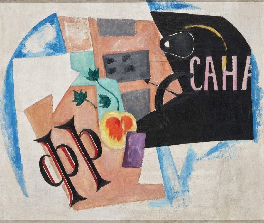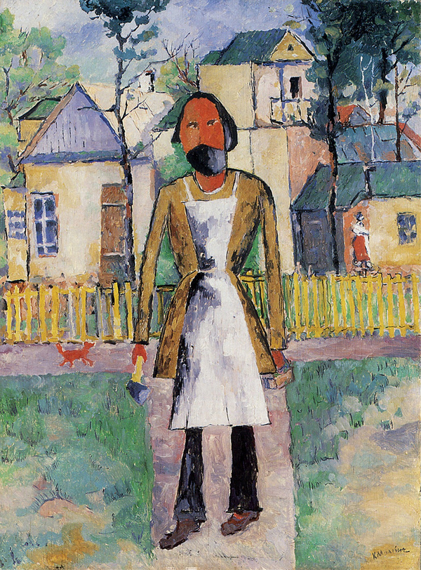 1 — «Натюрморт. Беспредметная композиция» О. В. Розанова, 1910-е года. 2 — «Плотник» К.Малевич, 1929 год.