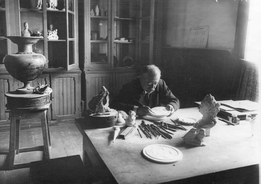 В период с 1918 по 1923 год на Императорском фарфоровом заводе работал Сергей Чехонин, ученик знаменитого русского художника Ильи Репина. Чехонин стал ключевой фигурой в создании агитационной посуды и заслуженно получил титул «отца» этого нового направления. Современники отмечали, что он начал формировать свой уникальный стиль, который сочетал элементы имперского и советского ампира. Этот период в истории завода получил название «эпоха Чехонина».