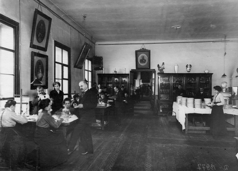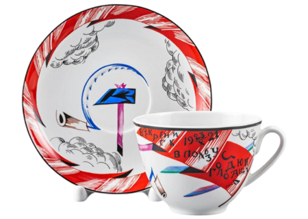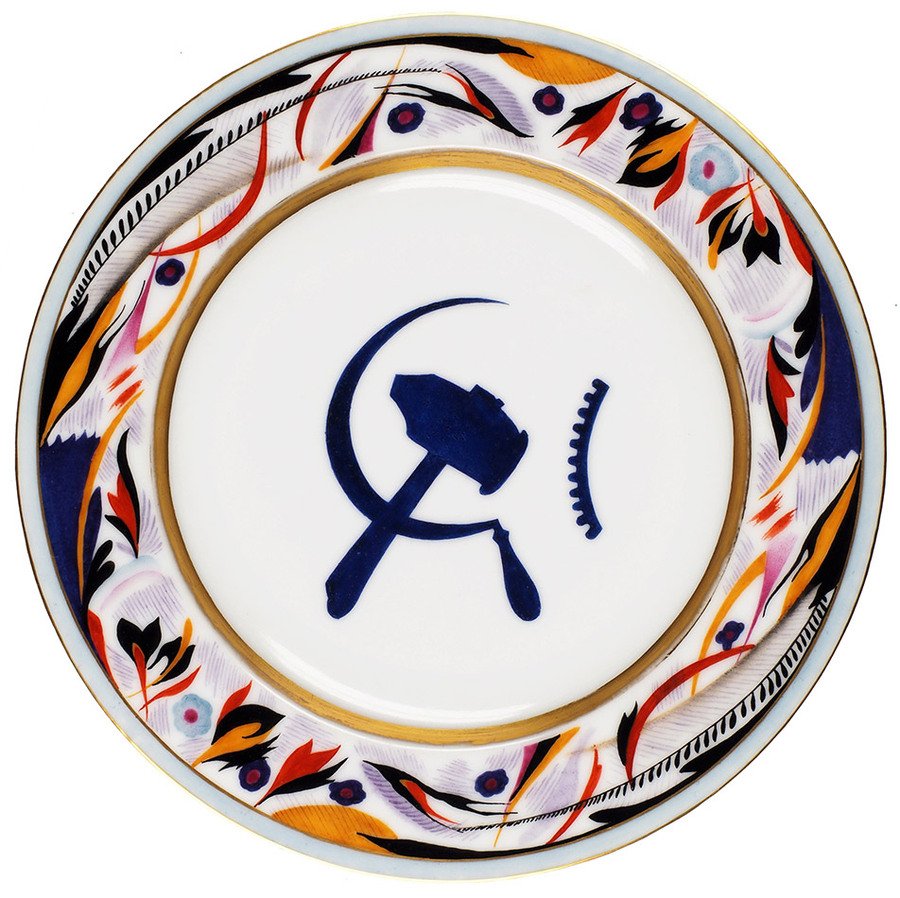 После захвата власти большевиками фабрика фарфора была переименована и перепрофилирована. Молодое государство испытывало потребность в пропаганде и стремилось использовать любые доступные поверхности для ее распространения. На заводе был найден большой запас белого твердого фарфора, который стал идеальным холстом для новых идей. Тарелки и чашки, предназначенные для королевских приемов, были преобразованы в агитационные объекты, которые не только служили для подачи пищи, но и несли политические послания подпитывая пролетарские умы, глаза и желудки.