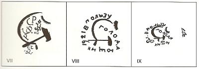 VII — вариант знака I, 1921. VIII — специальный знак, только в 1921 г. — в помощь голодающего Поволжья. IX — вариант знака VIII, 1921.X — вариант знака VIII, 1921. XI — вариант знака I, 1922.