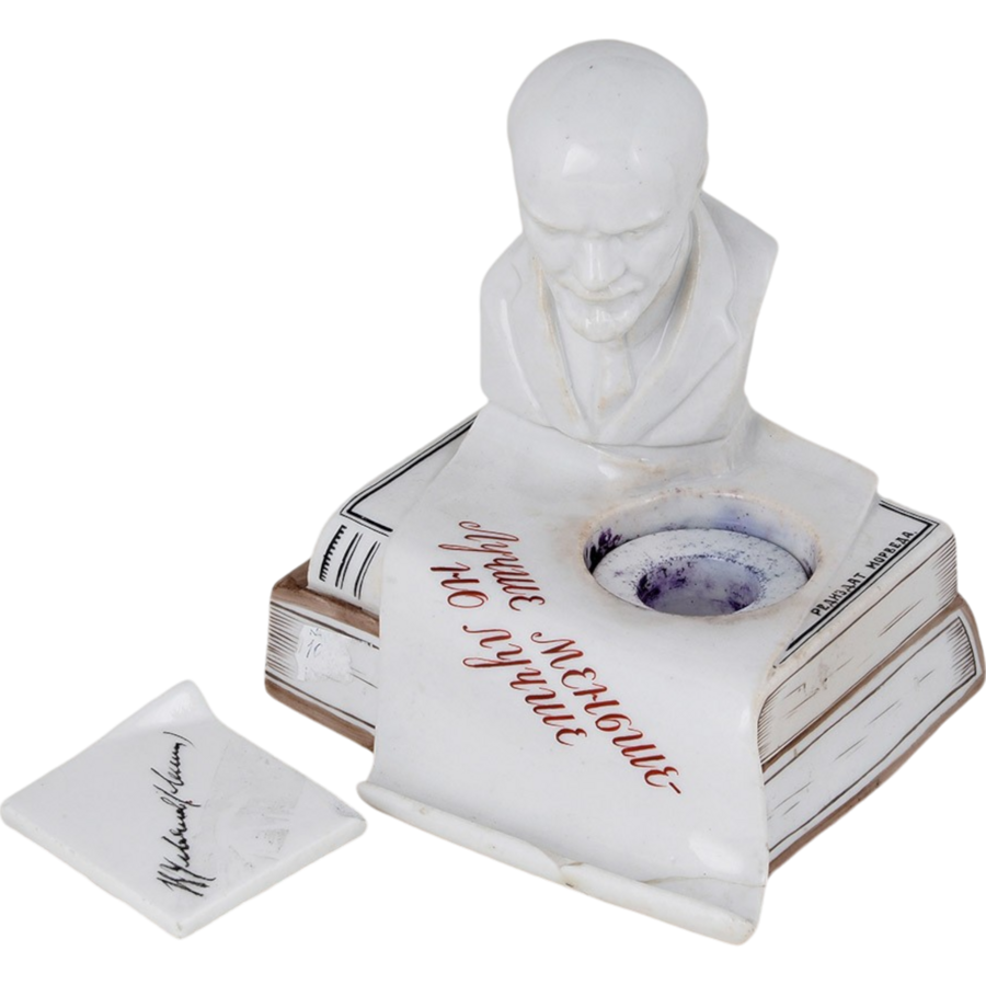 Чернильница с бюстом В. И. Ленина. СССР, Государственный фарфоровый завод (ГФЗ), автор модели Н. Я. Данько. 1930-е.