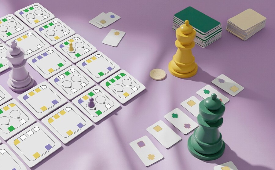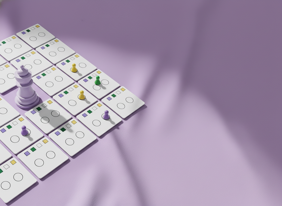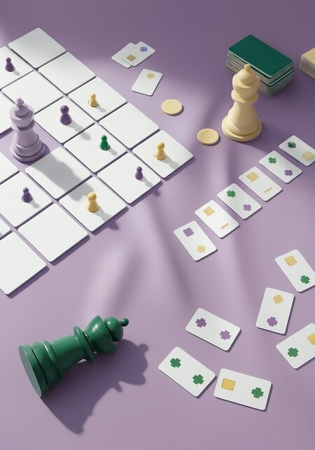 1. сделай 3д визуализацию компонентов для настольной игры нужны фишки разных цветов: фиолетовый, желтый. Все компоненты должны располагаться на поверхности так будто бы они были сняты в профессиональной студии. Фишки должны быть двух видов 2 большие этих 2 цветов и 3-4 маленьких тоже каждого из цветов. и всего должно быть 2 колоды карт.