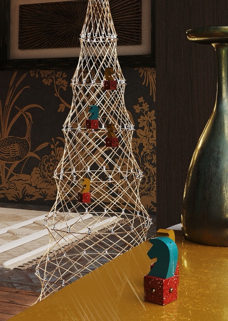 Дизайн новогодней игрушки вдохновлен эстетикой проекта GAMEPLACE и шахматными фигурами.