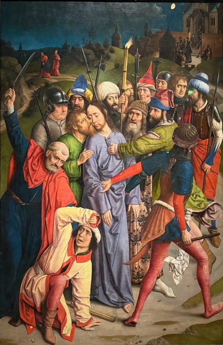 Дирк Баутс Арест Христа 1470 1480 https://artchive.ru/artists/6655~Dirk_Bauts/works/534173~Vzjatie_Khrista_pod_strazhu_ok1460