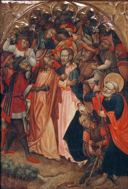 Поцелуй Иуды Автор неизвестен XIV век https://www.meisterdrucke.ie/fine-art-prints/Master-of-Retasc%C3%B3n/17656/The-Kiss-of-Judas.html